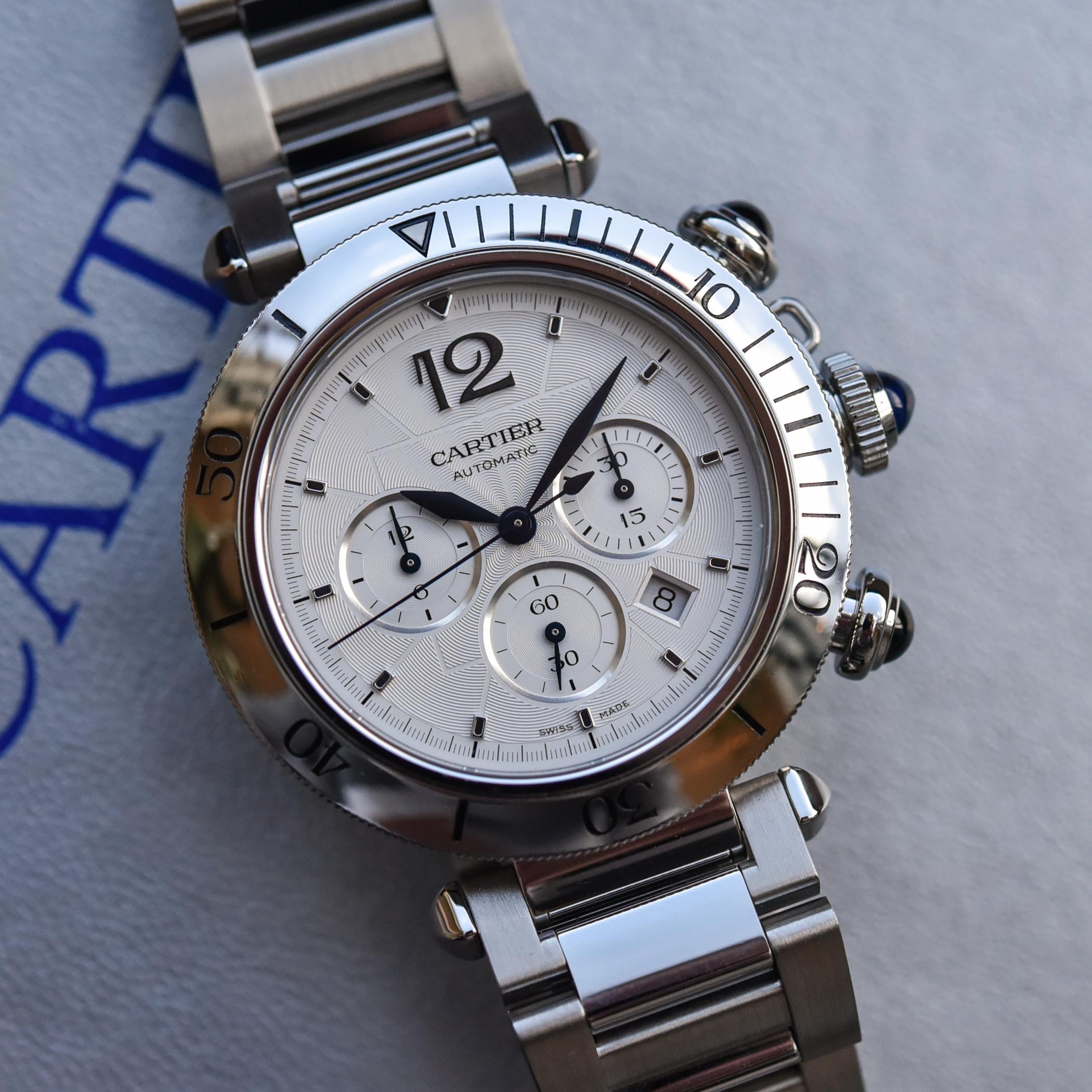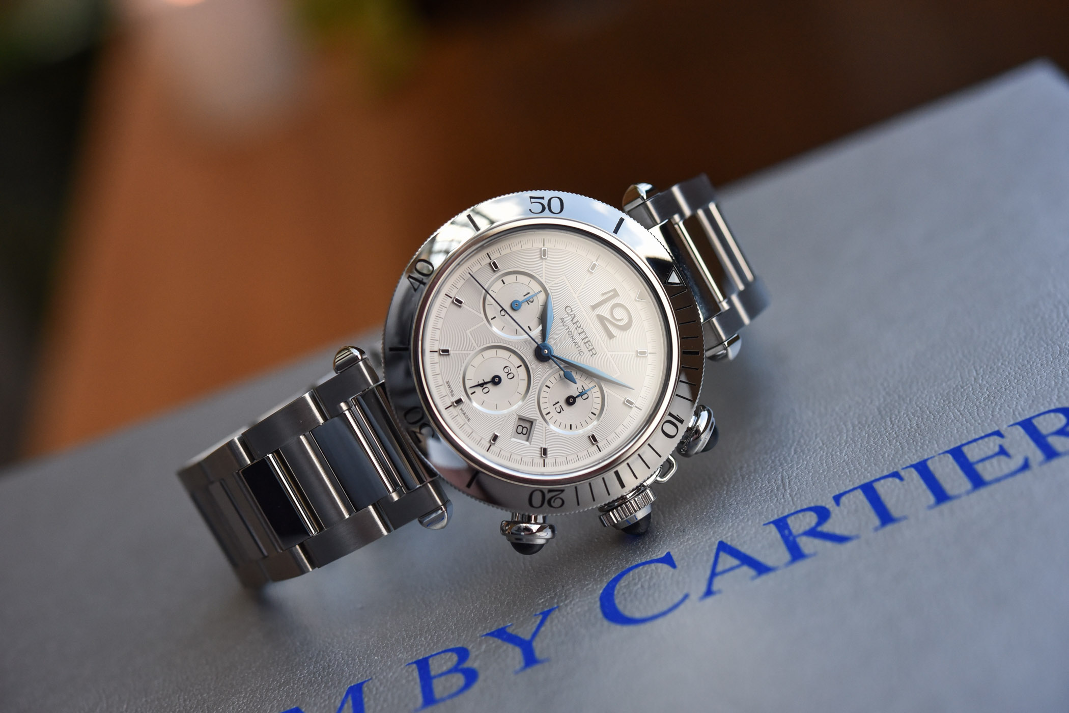 Pasha de Cartier saatları, Maison-un cəsarətli və fərqli formalarla hazırlanmış, göz oxşayan vaxt ölçən cihazlar yaratmağa davam edən sədaqətini nümayiş etdirir. Cabochon bəzəkli taclar, aydın qara ərəb rəqəmləri və mavi polad əqrəblər bu dizaynın yalnız bir neçə nümunəsidir. Parisli saat ustası indi 41 mm-lik Pasha kronoqraf modelini təqdim edir, bu modeldə idman üslubu aydın görünür. Saat dönən bezel, safir cabochon ilə bəzədilmiş düymələr, mexanizmi görməyə imkan verən safir arxa qapaq və brendin innovativ qayış dəyişdirmə texnologiyası ilə təchiz olunub.